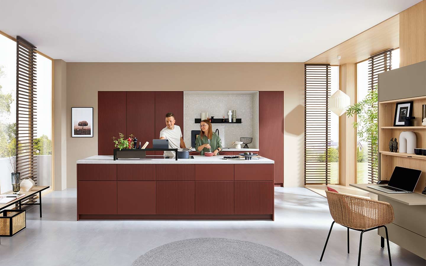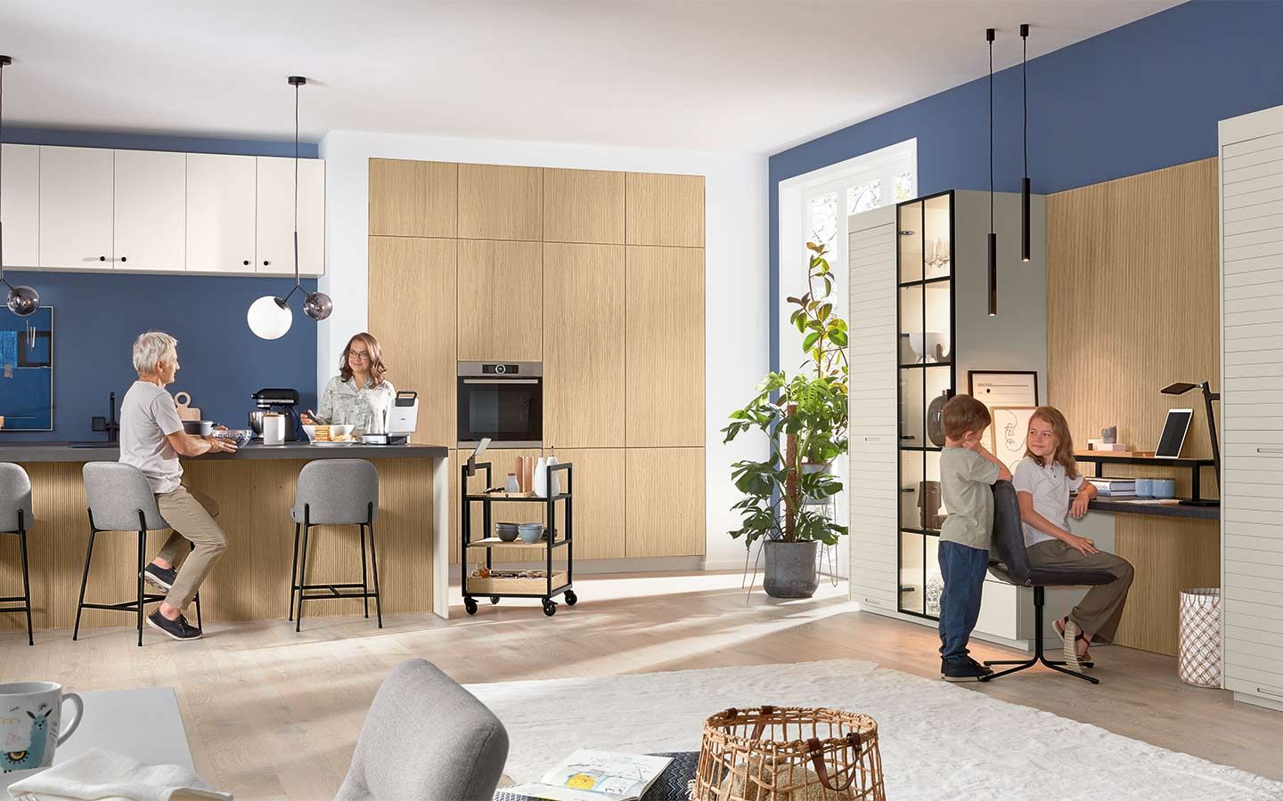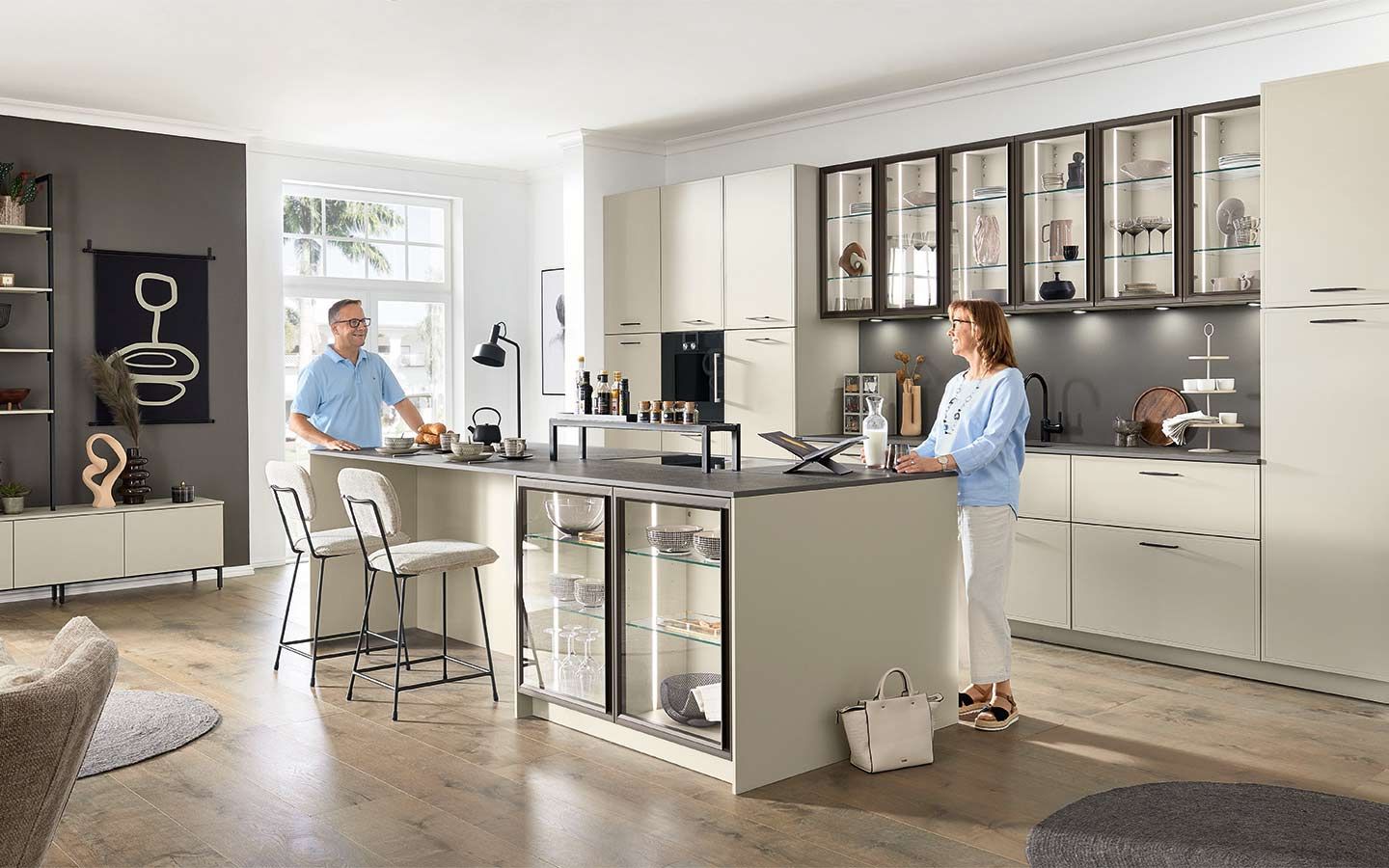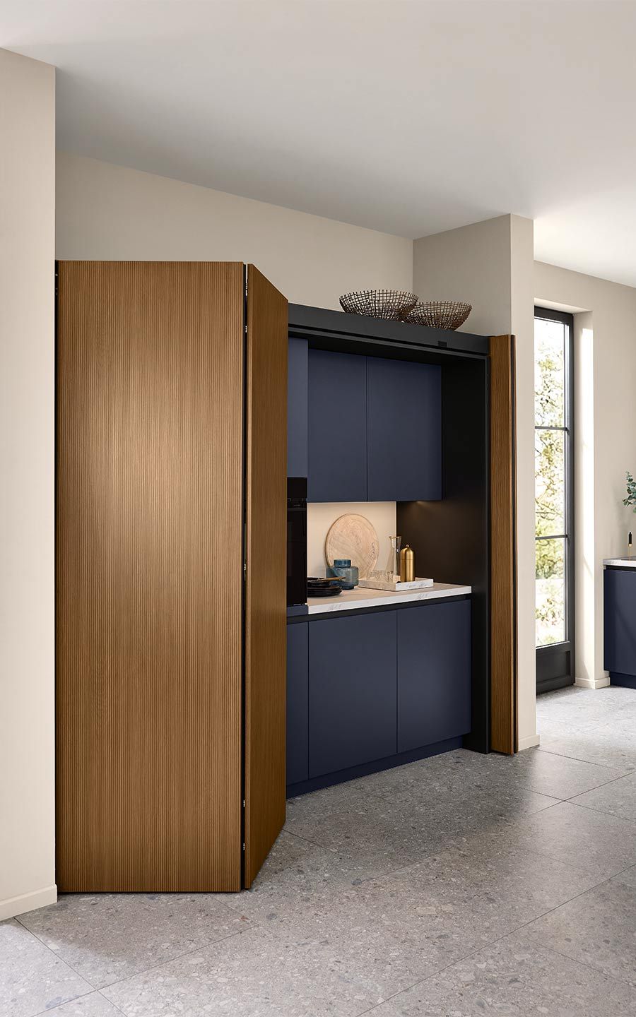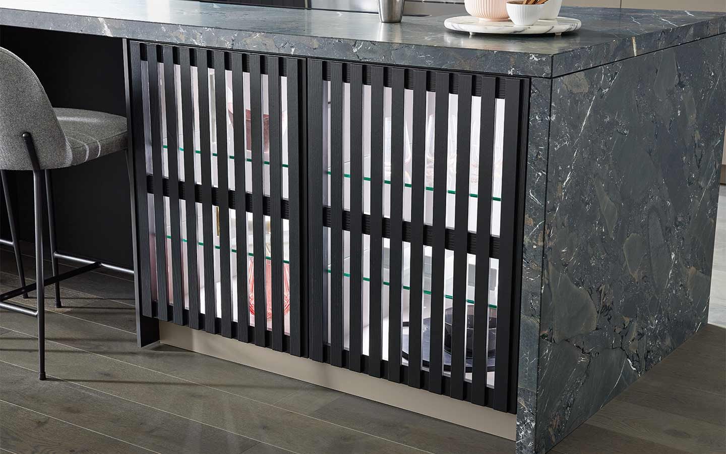 Bei der Planung wurde an alles gedacht: vom perfekt organisierten Stauraum bis hin zum Kühlschrank mit Klimazonen für die optimale Aufbewahrung aller Lebensmittel. Zusätzlich gibt es zahlreiche weitere clevere Details. Dazu gehören zum Beispiel ein Vorratsschrank mit integrierten, verschließbaren Behältern, ausziehbare Schrankböden, die zusätzliche Arbeitsfläche schaffen, großzügige Auszüge für Obst und Gemüse mit transparenten Glasdeckeln oder ein speziell beleuchtetes Regal für Küchenkräuter.